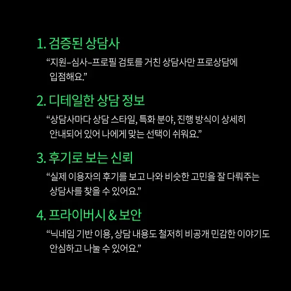 닉네임 기반 이용, 상담 내용도 철저히 비공개로 보호되어