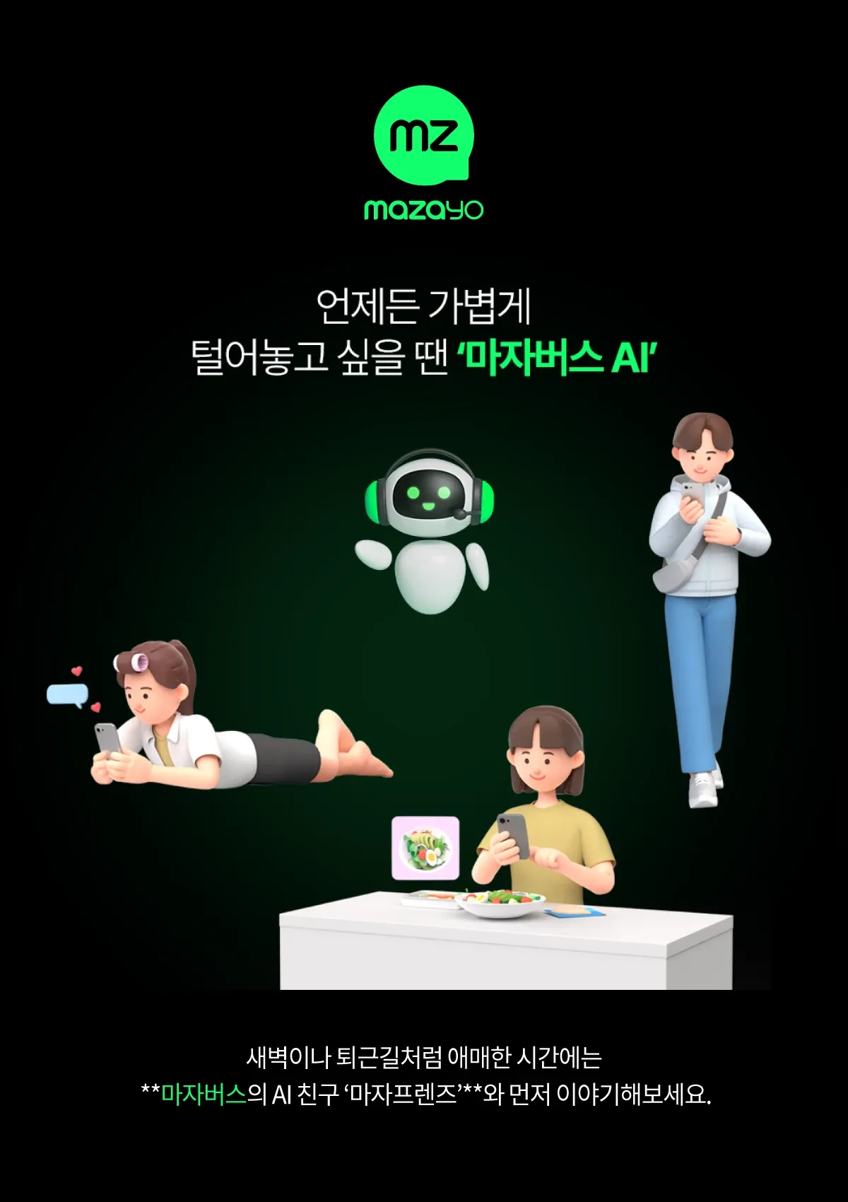 언제든 24시간 무엇이든 묻고 싶을 땐, 마자버스 AI 친구와 이야기해요.